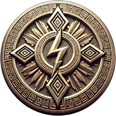 Un relámpago se alza en el centro, afilado y luminoso, símbolo del poder que desgarra la oscuridad. Lo rodean cuatro rombos que señalan los puntos cardinales, lanzas invisibles que someten la tierra al mandato del trueno. De su fulgor brotan haces como plumas ardientes, expandiendo la fuerza del estrépito celeste. La voz de Illapa resuena en los Andes: imperio nacido de la tormenta, sostenido en el estruendo de la victoria.